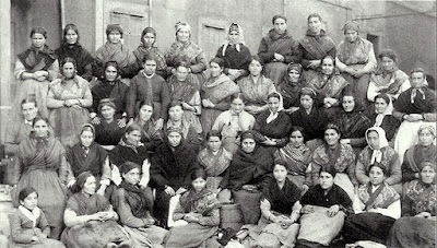 La fotografía de las mujeres pertenece a la Galeria de Von Aisaider Personal femeninu de la fabrica de vidrios 'La Industria' Xixón